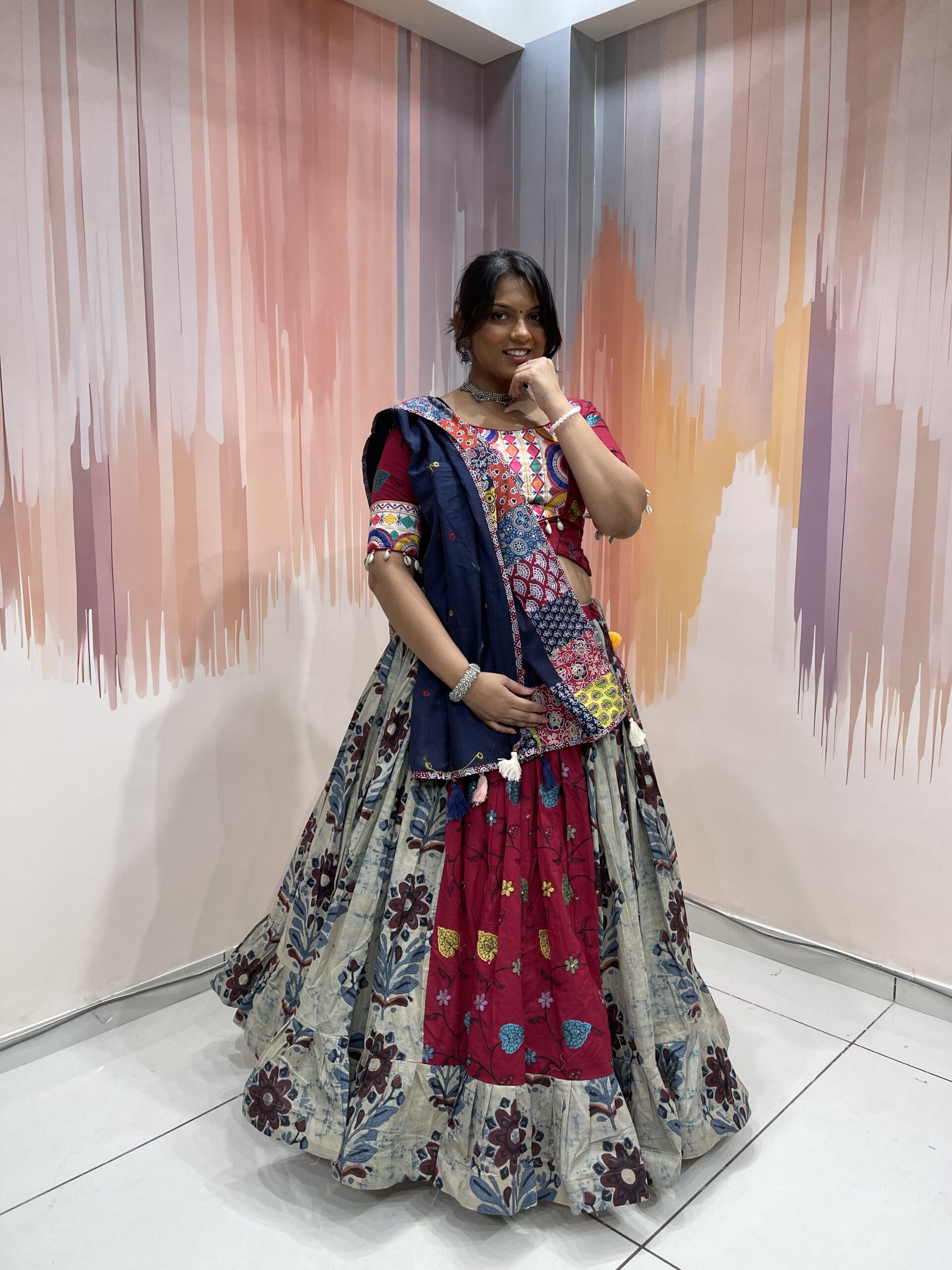 🌼 The Lehenga – Fusion of Prints & Craft