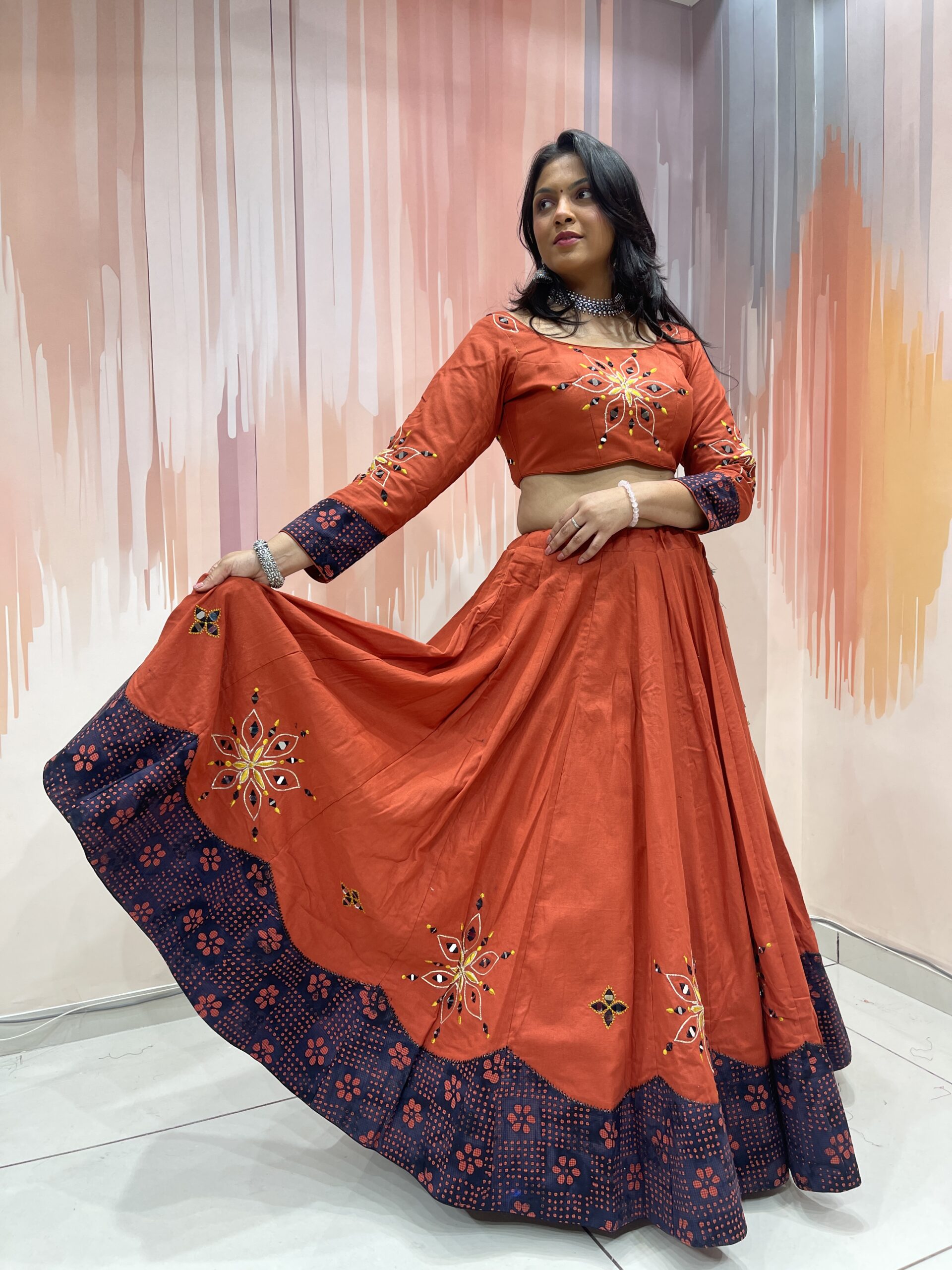 Introducing the Rust Red Traditional Navratri Chaniya Choli Set, a perfect fusion of timeless embroidery, bold ethnic colors, and modern-day comfort. Specially curated for Navratri 2025 and other vibrant Indian festivals, this handcrafted ensemble reflects the soul of Gujarati folk fashion while meeting the fashion expectations of today’s woman.